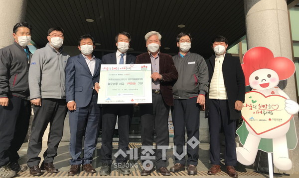 세종특별자치시 소정면 세종첨단일반산업단지 입주기업체협의회가 2일 소외된 이웃을 위한 성금 100만 원을 세종사회복지공동모금회를 통해 소정면지역사회보장협의체에 전달했다.
