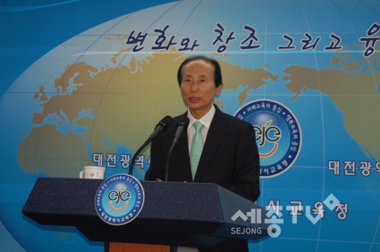 김신호 대전시교육감은 24일 오후1시 10분 시교육청 브리핑룸에서 긴급 기자회견을 갖고 대전과학고등학교가 교육과학기술부로부터 강원․충청권의 과학영재학교로 지정됐다고 밝혔다.