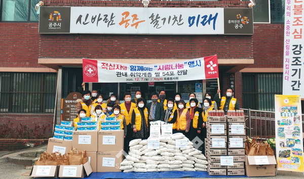 공주시 옥룡동(동장 이창원)은 지난 7일 옥룡동 적십자봉사회에서 동절기 및 코로나19로 어려움에 처해있는 취약계층을 위한 사랑의 쌀 540kg(200만원 상당)을 기탁했다고 밝혔다.