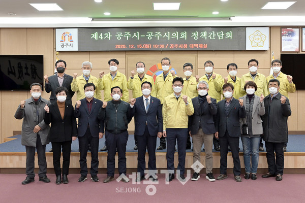 공주시(시장 김정섭)는 지난 15일 시청 대백제실에서 공주시의회와 제4회 정책간담회를 열고 시민행복과 지역경제 발전을 위한 상호 협력 방안을 논의했다.