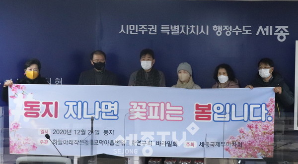 묘덕아홉번덖음차연구회(이사장 묘덕스님)가 지난 21일 동지를 맞아 세종시·세종시교육청을 찾아 팥시루떡을 전하고 ‘코로나19 극복 기원 나눔행사’를 가졌다.