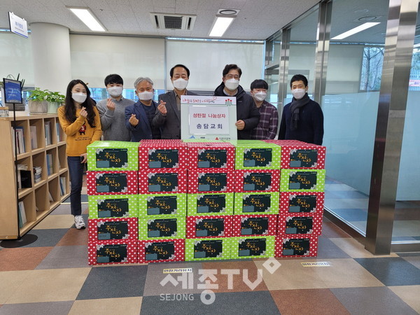 아름동에 위치한 송담교회(담임목사 임명성)는 지난 22일 성탄절을 앞두고 소외계층을 위해 280만 원 상당 나눔 상자 49박스를 기탁했다.