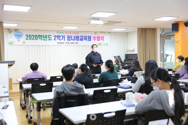 대전교육연수원(원장 이광우) 부설 꿈나래교육원에서는 2020년 12월 24일(목) 위탁교육학생과 교직원이 참석한 가운데 ‘꿈나래교육원 제8기 수료식’을 개최하였다.
