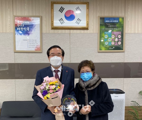 국민건강보험공단 이태영 지사장(보은‧옥천‧영동군)은 29일 지사장실에서 사회복지법인 영실애육원 김경자 원장으로부터 아동복지 지원 감사패를 수상하였다.