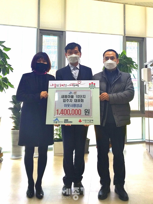 세종특별자치시 새뜸마을10단지 입주자대표회(회장 김현옥)가 29일 어려운 이웃돕기에 사용해달라며 새롬동 지역사회보장협의체(공동위원장 윤강욱·강영운)에 성금 140만 원을 전달했다.