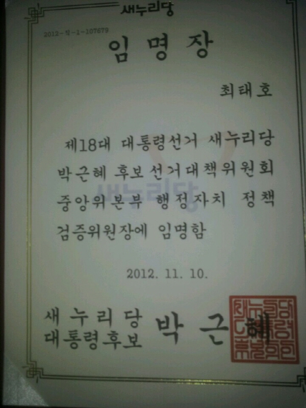 앞서, 최 예비후보는 자신은 지난 대선에서 “박근혜대통령후보 중앙선거대책위원회 행정자치 정책검증위원장을 엮임 하였고, 현재 출마를 밝힌 후보자중에서 가장 젊다. 세종시교육감은 반드시 힘 있고 추진력 있는 교육감이 나와야 된다”고 밝힌 바 있다.