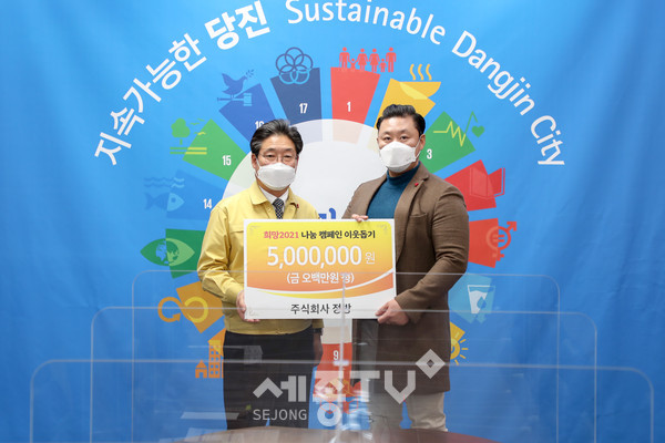 지난 1월 5일 당진시청 목민홀에서 주식회사 정방(대표 신규식)이 5백만 원을 기부하며 훈훈한 소식을 전했다.