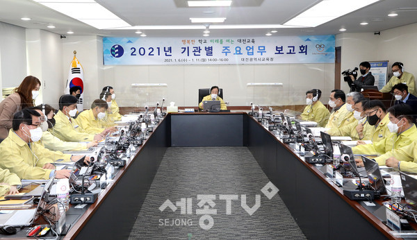 대전광역시동부교육지원청(교육장 유덕희)은 2021년 1월 6일(수) 14시, 설동호 대전광역시교육감, 초·중학교 교장 대표와 관내 지구별 자율장학 협의체 대표 학교장 및 학교운영위원회 위원장, 공·사립 유치원장 대표, 교육지원청 직원 등 이 참석한 가운데 2021년 주요업무계획 보고회를 가졌다고 밝혔다.
