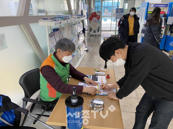 아름동 자율방재단은 행정복지센터, 복합커뮤니티센터 내 방역봉사를 자진해 10여 명이 요일별 시간을 정해 내방객 발열 확인 등 봉사활동을 벌이고 있다.