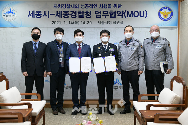 세종특별자치시(시장 이춘희)가 14일 세종경찰청(청장 이명호)과 업무협약을 맺고 오는 7월 1일부터 전면시행 되는 자치경찰제의 성공적인 시행을 위해 발 빠르게 움직이고 있다.