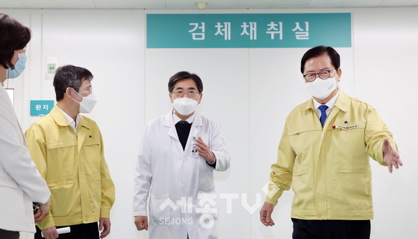 장종태 대전 서구청장은 14일 감염병 전담병원으로 지정된 대전 을지대학교병원(병원장 김하용)을 방문하여 감염병 방역의 최일선 현장을 살피고, 의료진들을 격려하였다.