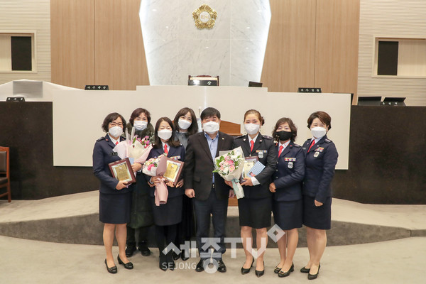 당진시의회(의장 최창용)는 14일 당진시의회 본회의장에서 관내 방범활동과 봉사활동으로 지역사회 발전에 헌신한 관내 엄마순찰대 활동 유공자에 대한 고마움을 전하고자 표창패를 수여했다.