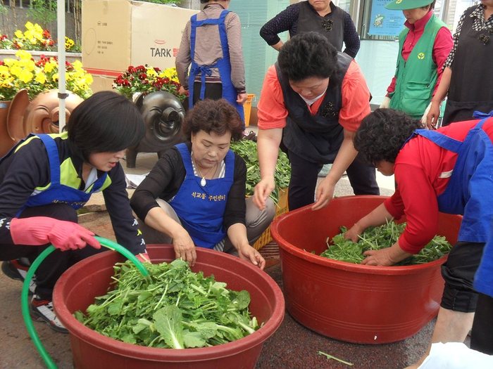 대전시 중구 석교동 자생단체협의회(회장 이원규)는 14일, 회원들이 직접 경작한 채소를 수확해 열무김치를 담가 독거노인 등 저소득 소외계층 100세대에게 전달했다.