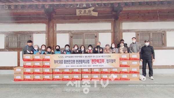 세종시 도담동지역사회보장협의체는 26일 연서면 보림사와 업무협약을 맺고 독거노인, 기초수급자 등 취약계층 50가구에 설맞이 밑반찬을 지원했다.