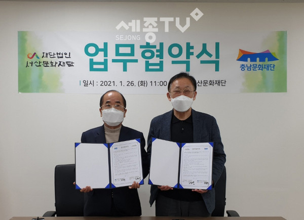 (재)충남문화재단(대표이사 김현식)과 서산문화재단(대표이사 조규선)은 지난 26일 서산문화재단에서 양 기관 관계자 등 10여명이 참석한 가운데 업무협약을 체결했다.