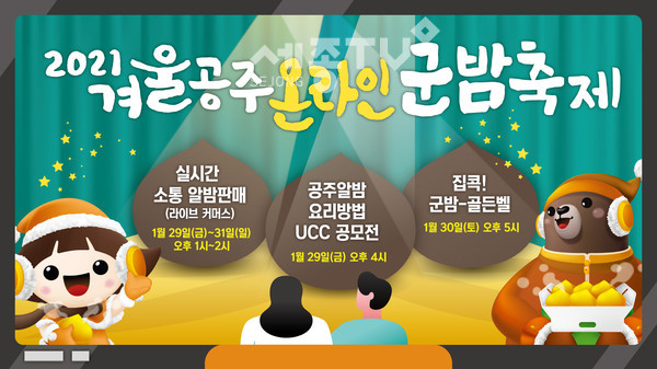 중부권 최대 겨울축제인 ‘겨울공주 군밤축제’가 올해는 코로나19 영향으로 온라인을 통해 오는 29일 개막, 3일 동안 열린다.