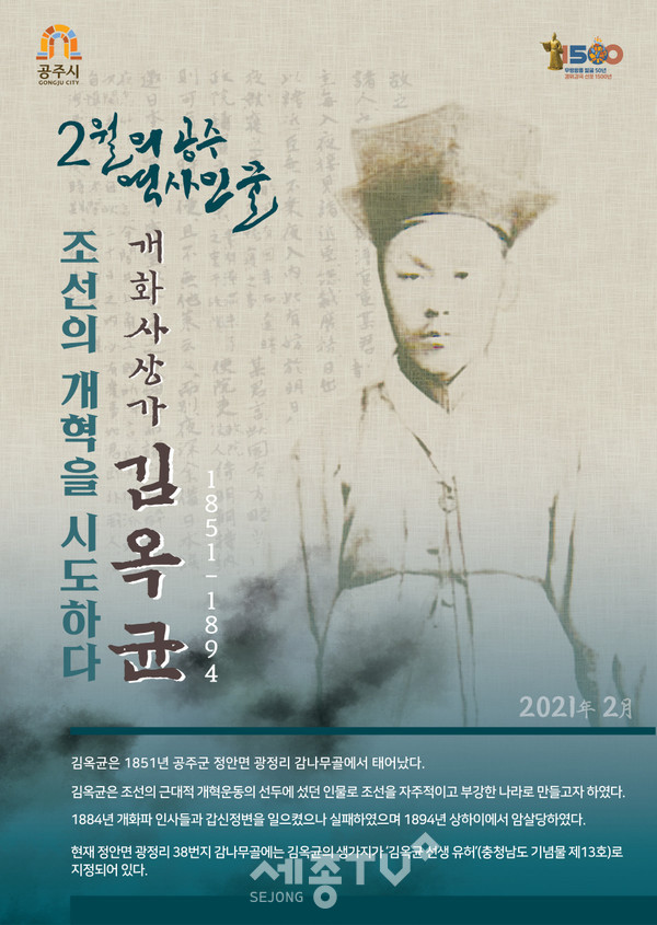 공주시(시장 김정섭)는 2월 이달의 역사인물로 근대화를 통해 조선의 개혁을 시도한 개화사상가 김옥균을 선정했다.