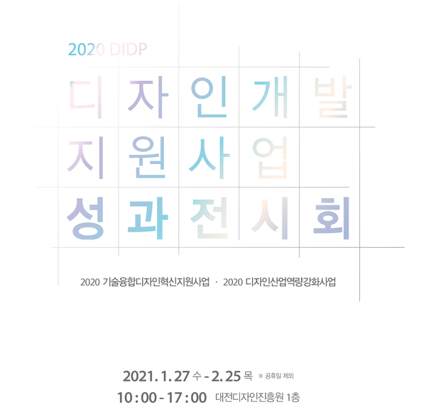 대전디자인진흥원(원장 윤병문)이 내달 25일까지 진흥원 1층에서 ‘2020 DIDP 디자인개발지원사업 성과전시회’를 개최한다고 27일 밝혔다.