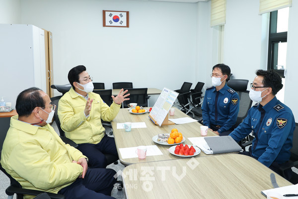 마지막으로 동부경찰서 가양지구대를 방문한 허태정 시장은 명절연휴에도 쉬지 못하고 시민의 안전을 위해 비상근무를 하는 경찰 관계자의 노고를 위로했다.