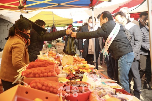 천안시(시장 박상돈)가 설 명절을 앞두고 코로나19 확산으로 어려움을 겪고 있는 전통시장 소비촉진을 위해 전통시장 이용을 당부하고 있다.