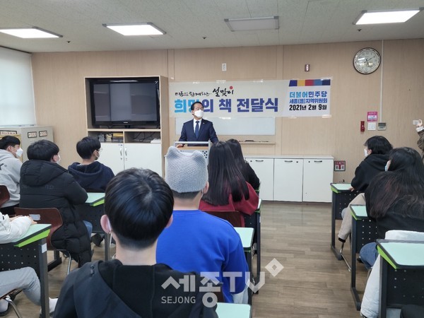 강준현 더불어민주당 세종시당위원장(세종시 을 국회의원)은 9일 오후 5시 세종종합사회복지관 가온청소년방과후아카데미를 방문해 중학생 20명을 대상으로‘희망의 책 전달식’을 가졌다.