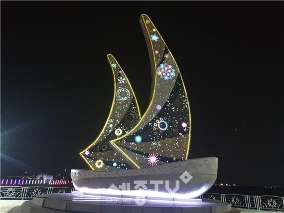 이에 시에서는 관광콘텐츠 강화사업의 일환으로 시를 상징하는 기존 돛단배 모형의 조형물에 광섬유를 설치해 형형색색의 생동감 있고 화려한 조명을 구현했다.