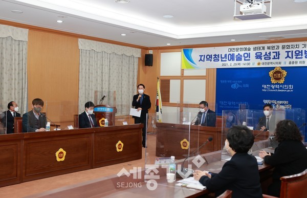 대전광역시의회 홍종원 행정자치위원장(더불어민주당, 중구2)은 대전문화정책포럼과 공동주관으로, 25일 시의회 대회의실에서 ‘지역청년예술인 육성 및 지원방안 정책토론회’를 개최했다.