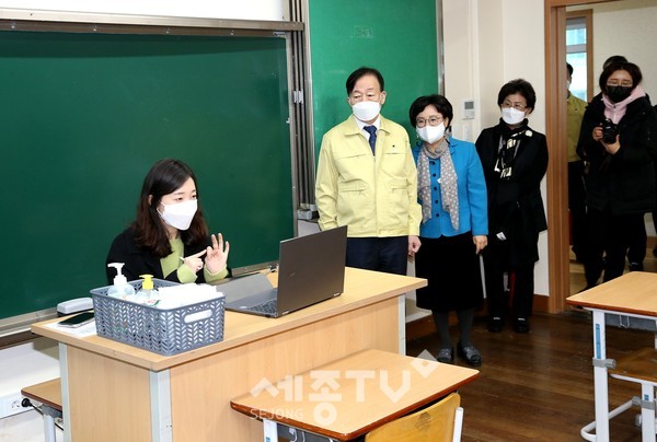 또한 수업이 이루어지는 초등학교 1~2학년 교실을 순회하면서 책상 거리 유지, 감염 예방 물품 비치 상황 등을 살피고, 학교 관계자 간담회를 통해 등교수업 시 학생 간 밀접 접촉 최소화 방안과 원격수업 질 제고 방안 등에 대한 의견을 나눴다.