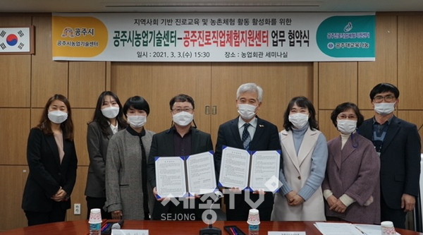 공주시농업기술센터(소장 심규덕)는 지난 3일 농업회관에서 공주진로직업체험센터(센터장 박상옥)와 지역사회 기반 진로교육 및 농촌체험 활동 활성화를 위한 업무 협약식을 가졌다.