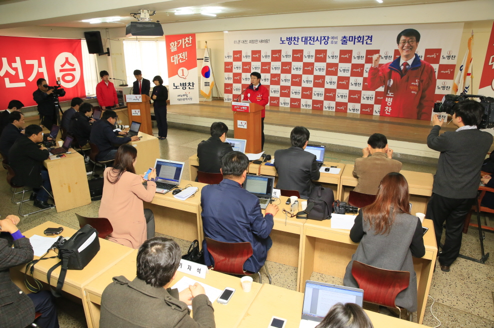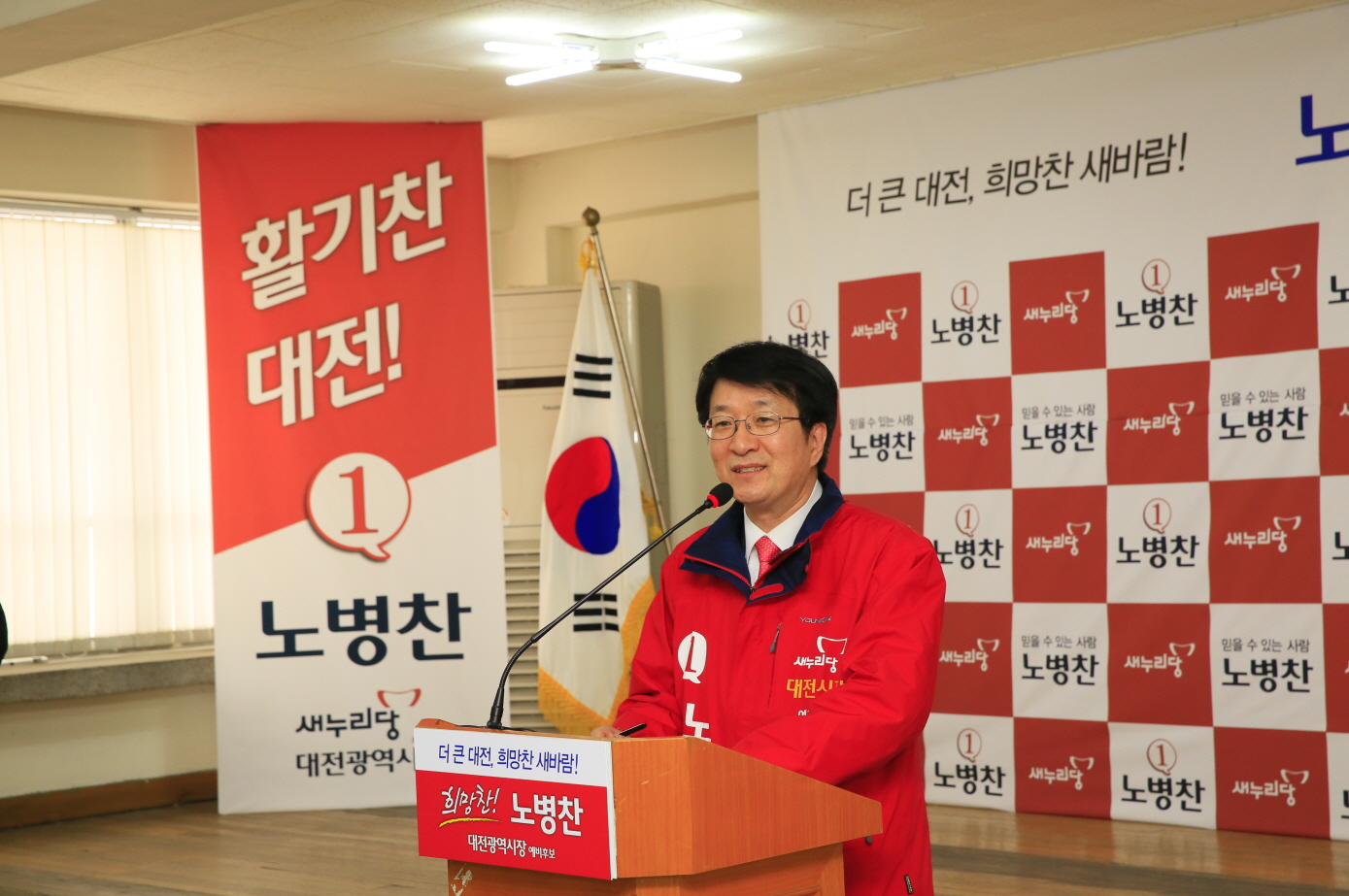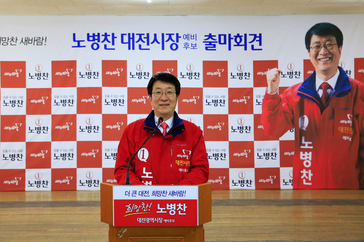 노병찬 대전시장 예비후보는 18일.(화) 오후 3시에 새누리당 대전시당 3층 대강당에서 “저에게 생명을 주고 청운의 꿈을 영글게 한 고향 대전을 위해 이제 모든 것을 내려 놓고 시민 여러분 앞에 섰습니다”며 “오늘 더 큰 대전, 희망찬 대전을 열어나가기 위해 새누리당 소속으로 대전광역시장 선거 출마를 공식 선언한다”며 유권자들의 적극적인 지지와 성원을 부탁했다.