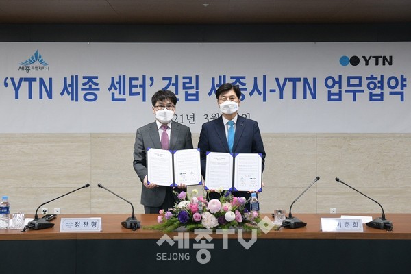 세종특별자치시(시장 이춘희)가 ㈜YTN(사장 정찬형)과 12일 오후 5시 30분 서울 상암동 YTN 뉴스퀘어 대회의실에서 ‘YTN 세종센터(가칭) 건립을 위한 양해각서(MOU)’를 체결했다.