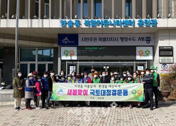 세종특별자치시 한솔동(동장 김선호)이 17일 관내 기관·단체와 함께 한솔동 일원에서 새봄맞이 국토대청결운동을 전개했다.