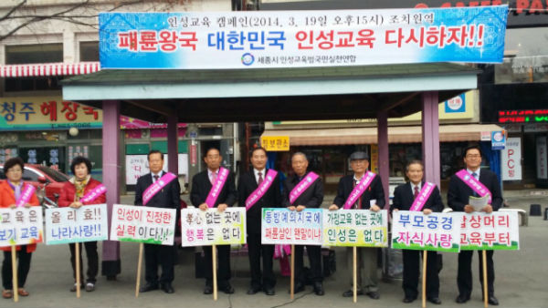 인실련은 배포된 홍보물을 통해 효 교육 실천 방안으로 ▲가정교육, 밥상머리 교육, 본보기 교육 실천 ▲학교 교육 회초리 되살리기 등을 제시했다.