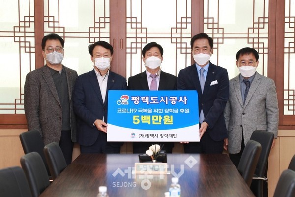 이날 기탁식에는 정장선 평택시장, 김재수 평택도시공사 사장, 박윤식 평택시 장학재단 이사장 등이 참석했으며, 장학금은 장학재단을 통해 평택시 장학사업에 쓰여질 예정이다.