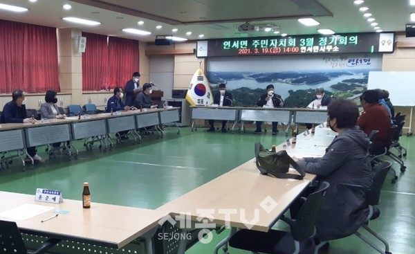 세종특별자치시 연서면 주민자치회(회장 오옥균)가 19일 연서면행정복지센터 대회의실에서 올해 첫 정기회의를 열고 올해 추진할 주요 현안 과제를 논의했다.