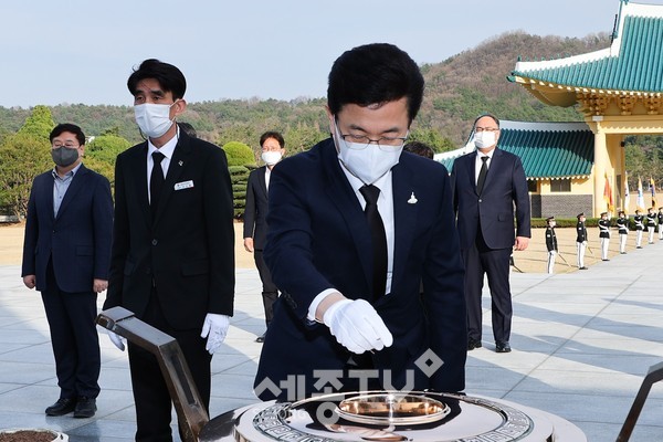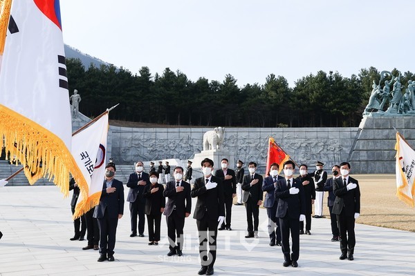 허태정 대전시장은 26일 ‘제6회 서해수호의 날’을 맞아 참모들과 함께 국립대전현충원을 방문해 호국선열에 대한 헌화 및 참배를 진행했다.