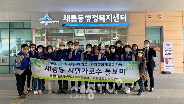 세종특별자치시 바르게살기운동 새롬동위원회(위원장 강영운)가 26일 새롬중앙로 상가일대, 나성동 상가 주변에서 회원, 새롬동 관계자 등이 참여한 가운데 ‘시민 가로수 돌보미 활동’을 펼쳤다.