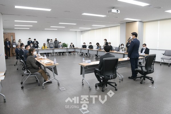 이날 행사는 세종시민대학 집현전의 그간 추진 경과 설명을 시작으로 이춘희 시장, 이태환 세종시의회 의장 축사, 현판 수여, 간담회 순으로 진행됐다.