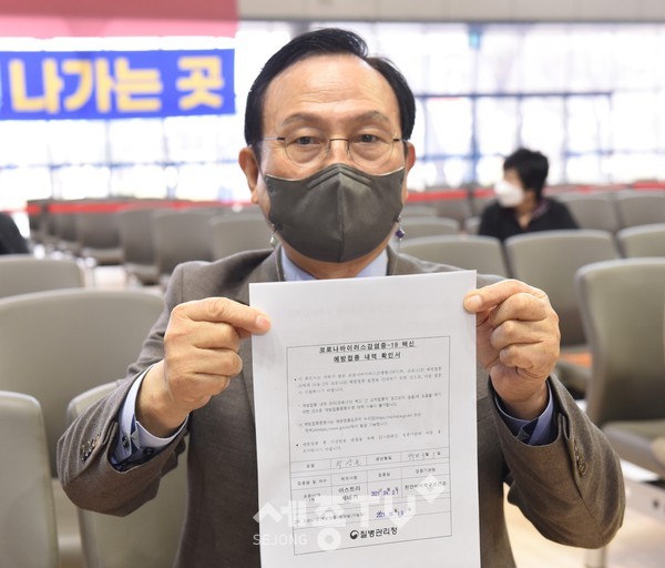 천안시는 박상돈 시장이 1일 오전 천안시 예방접종센터(실내 테니스장)에서 아스트라제네카(AZ) 코로나19 백신을 접종받았다고 밝혔다.