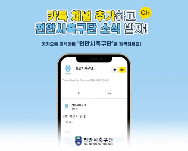 천안시축구단이 팬들과 빠르고 편리한 소통 및 정보 전달을 위해 공식 카카오톡채널을 개설했다.
