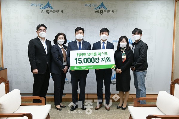 이날 전달식에서 이신재 위텍코퍼레이션㈜ 대표는 코로나19 장기화로 세종시 어린이들의 감염 예방을 위해 915만 원 상당의 어린이용 마스크 1만 5,000매를 기탁했다.