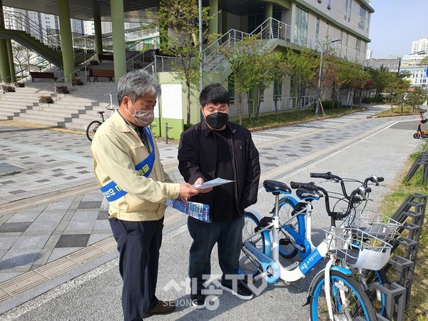 세종특별자치시 도담동(동장 양진복)이 지난 15일 관내 전동 이륜자전거 이용 시민을 대상으로 안전모 착용 및 음주운전 금지 등의 안전문화 운동을 실시했다.