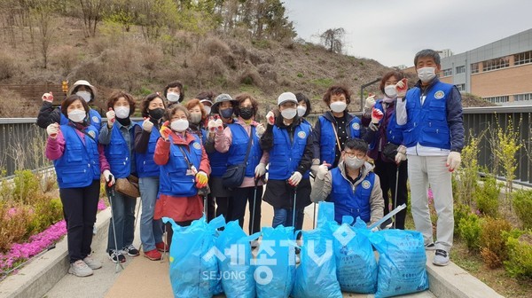 세종특별자치시 새롬동(동장 윤강욱)이 16일 가득뜰 근린공원 일대에서 바르게살기운동 새롬동위원회(위원장 강영운) 관계자 20여 명이 참여한 가운데 ‘시민 가로수 돌보미 활동’을 진행했다.