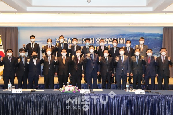 한편, 전국시도의회의장협의회는 이번 임시회에서 세종과 대전, 청주를 연결하는 ‘충청권 광역철도망 제4차 국가철도망 구축계획 반영 촉구 건의안’ 등 총 17개 안건을 수렴하고, 이태환 의장을 비롯한 전국시도의회 의장들에게 제주도 명예도민증을 전달했다.