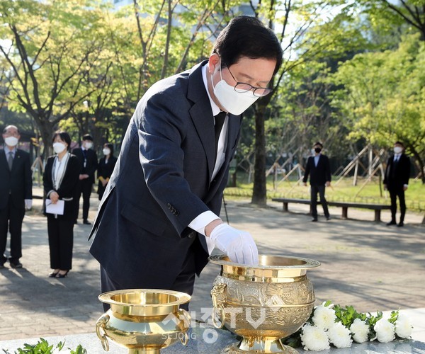 장종태 대전 서구청장은 19일 자유민주주의 수호를 위해 독재정권의 불의에 항거했던 4ㆍ19혁명 61주년을 맞이하여 둔지미공원에 자리한 3ㆍ8 민주의거 기념탑을 찾아 참배했다.
