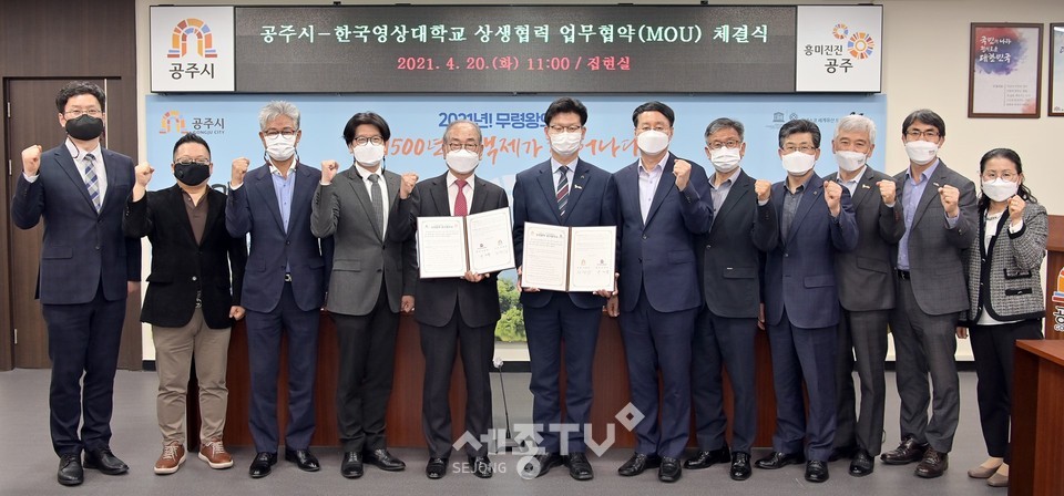 이날 협약식은 김정섭 시장과 유재원 한국영상대 총장을 비롯해 양 기관 관계자 10여 명이 참석해 공주시와 한국영상대학교의 공동 발전을 위한 상호 교류‧협력 사항을 논의했다.