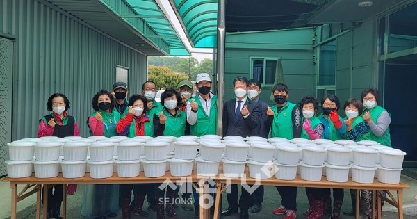 세종특별자치시 연기면 새마을협의회(회장 김윤제)가 지난 27일 지역 내 독거노인 등 사회취약계층 100여 가구를 위해 ‘사랑의 김치 나눔 봉사’를 펼쳤다.