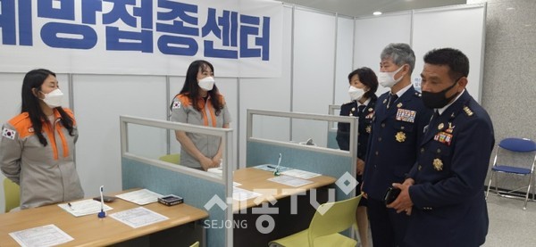 예방접종센터에는 안전하고 신속한 접종을 위해 백신 주사가 가능한 간호사 면허가 있는 구급대원과 지원 인력인 의용소방대, 보건 관계 공무원 등 하루 50여 명이 코로나19 극복을 위해 근무하고 있다.