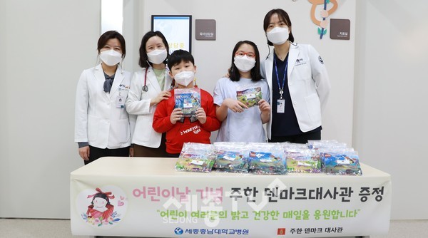이날 나눠준 선물은 주한 덴마크대사관에서 기부한 ‘레고’ 장난감 150개로 병원에 입원 치료 중이거나 재활 및 외래 진료차 내원한 소아 환아들에게 전달됐다.