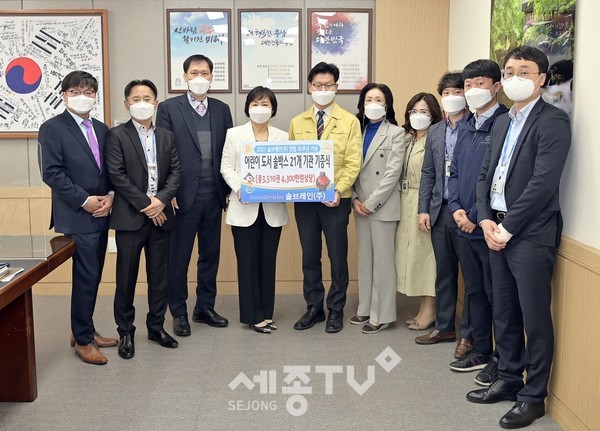 이날 기증식엔 김정섭 시장과 솔브레인 나눔재단 임혜옥 이사장, 솔브레인(주) 강창규 상무 등이 참석했다.